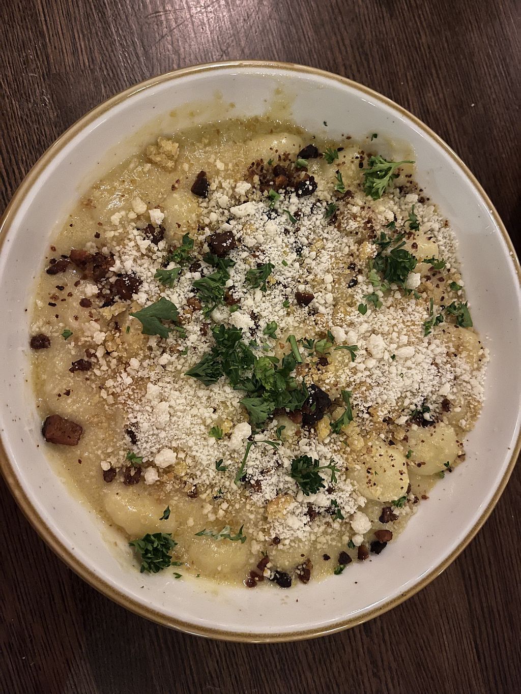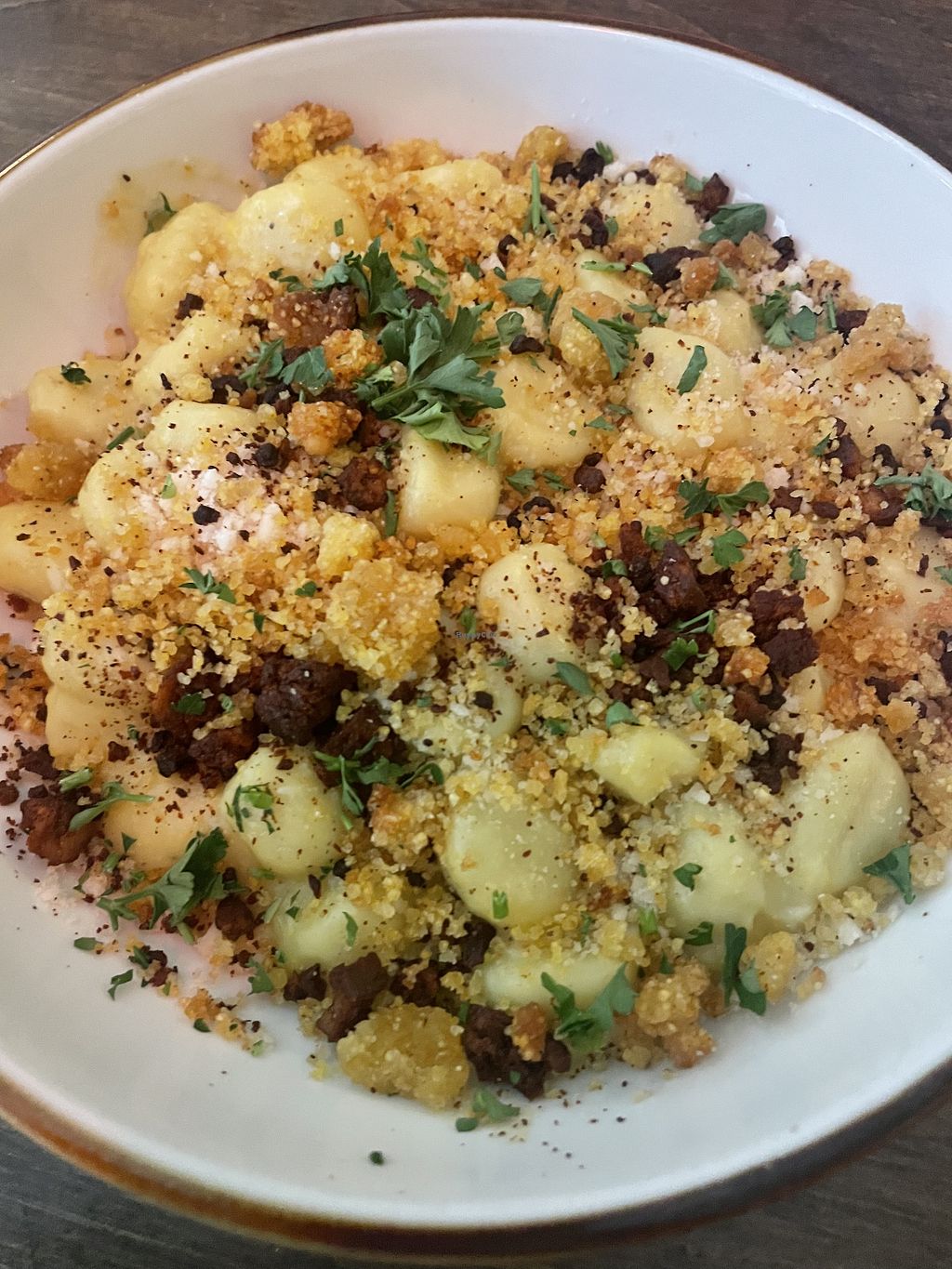 Seasonal Gnocchi: Corn, cornbread croutons, bacon, parm