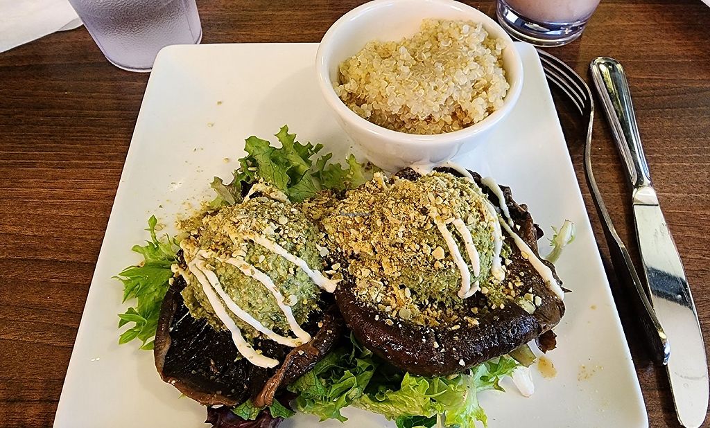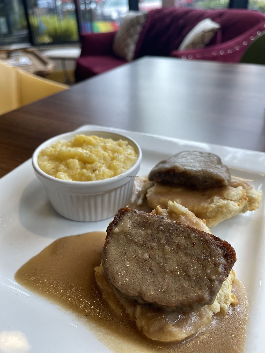Brunch: eggplant bacon, tempeh sausage, biscuits and gravy, blue grits…