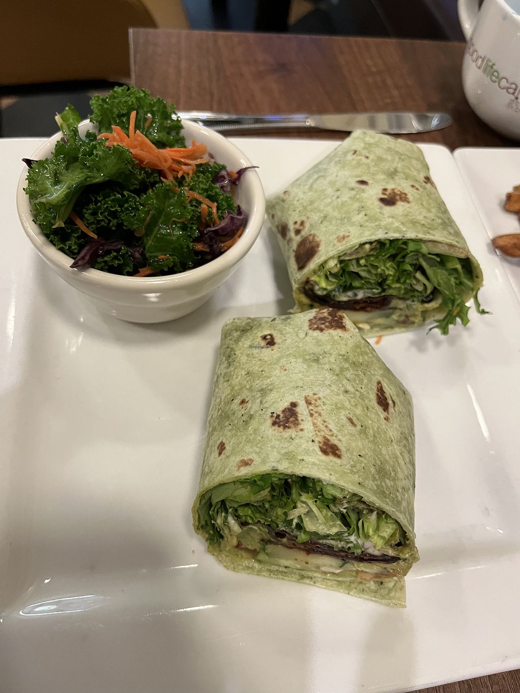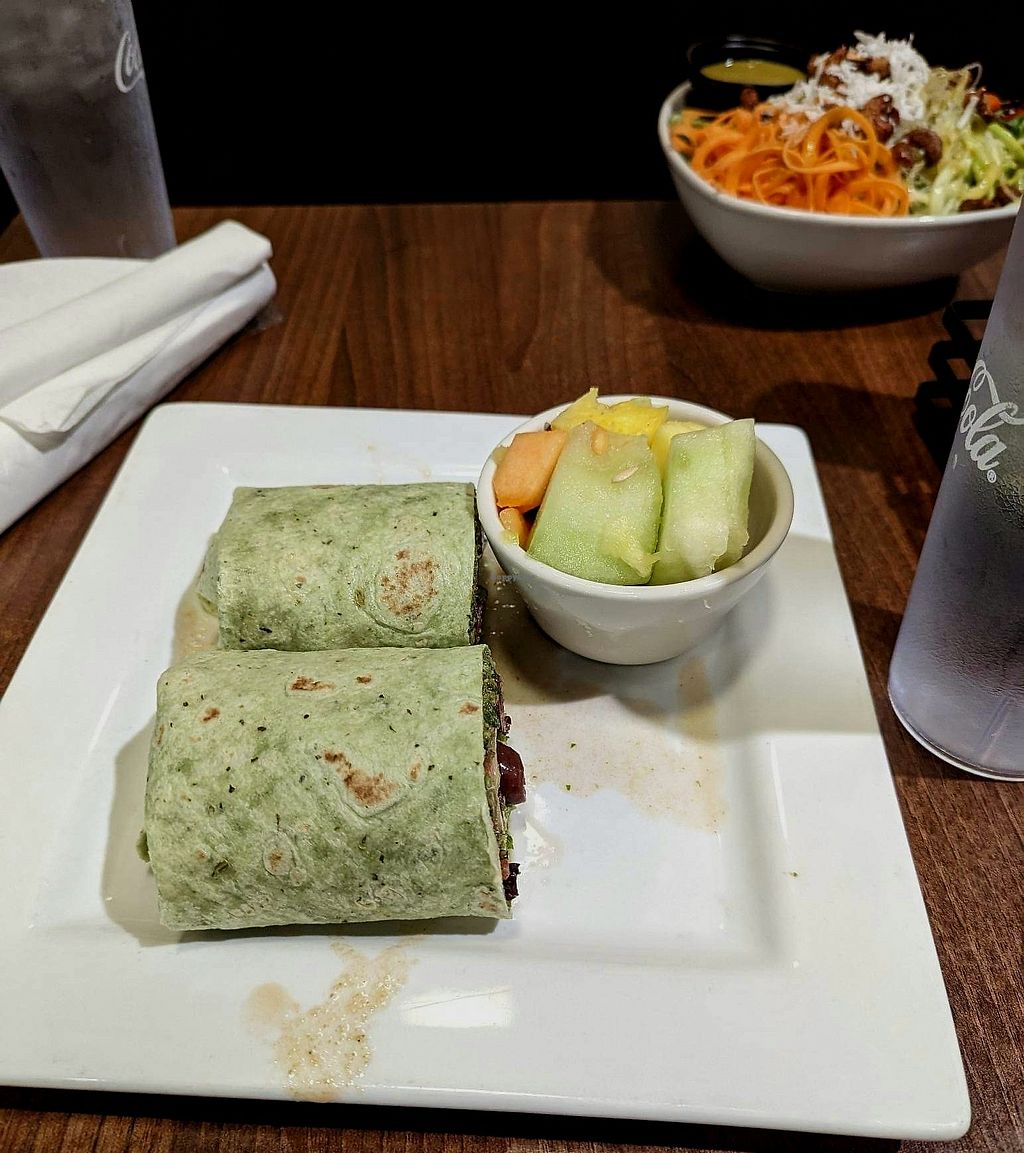 Mediterranean Wrap with side of Fruit (Asian Noodle Salad in backgroun…