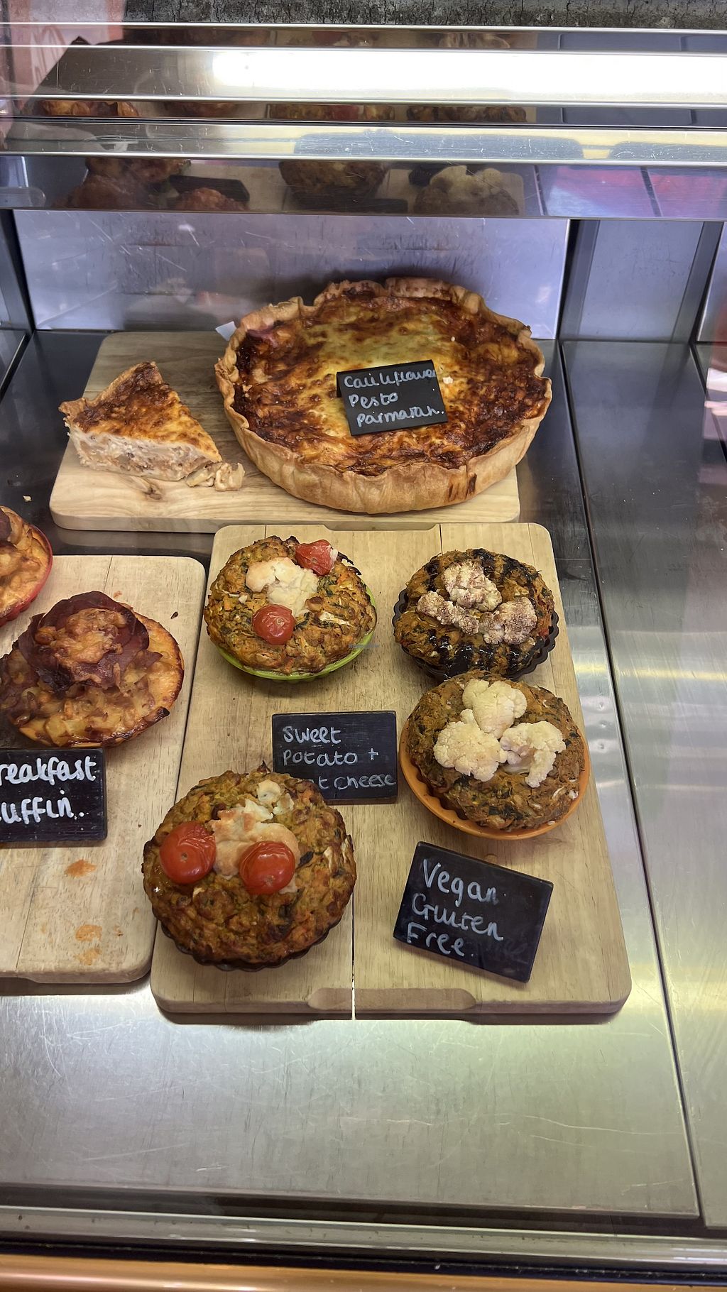 Pros: Lovely fresh salad with homemade savoury muffin, Decaf coffee with oat milk , Fresh warm home made cakes