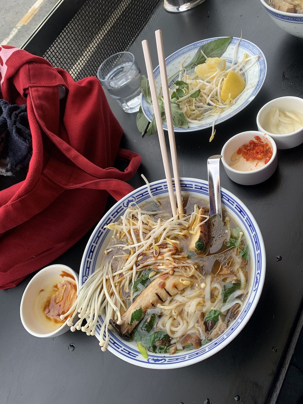Mushroom pho and iced jasmine tea