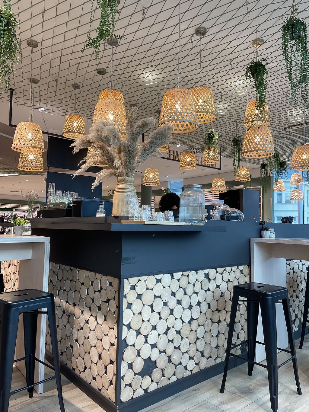 Ein kleines, im Geschäft integriertes Café, das zu einer Pause während eines Stadtbummels einlädt. Kleines Café mit Suppe oder vorbereiteten, kleinen herzhaften und süßen Speisen. Der Walnuss Rohkostkuchen ist sehr zu empfehlen.