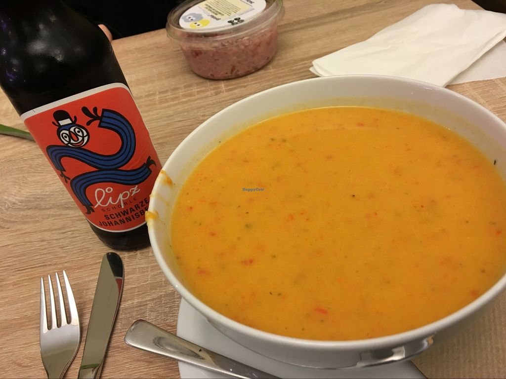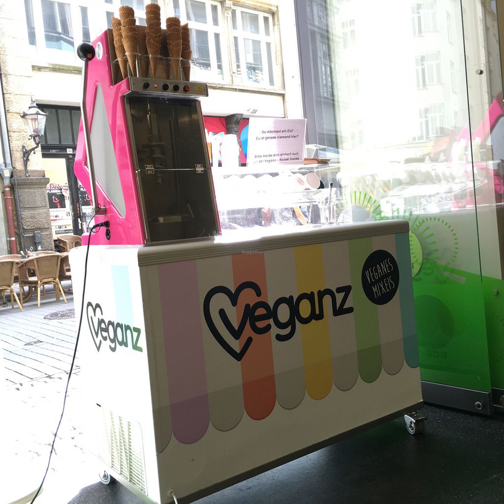 next to the veganz supermarket and the street not really cosy, but very, very huge range of different vegan snacks which were all very good.
