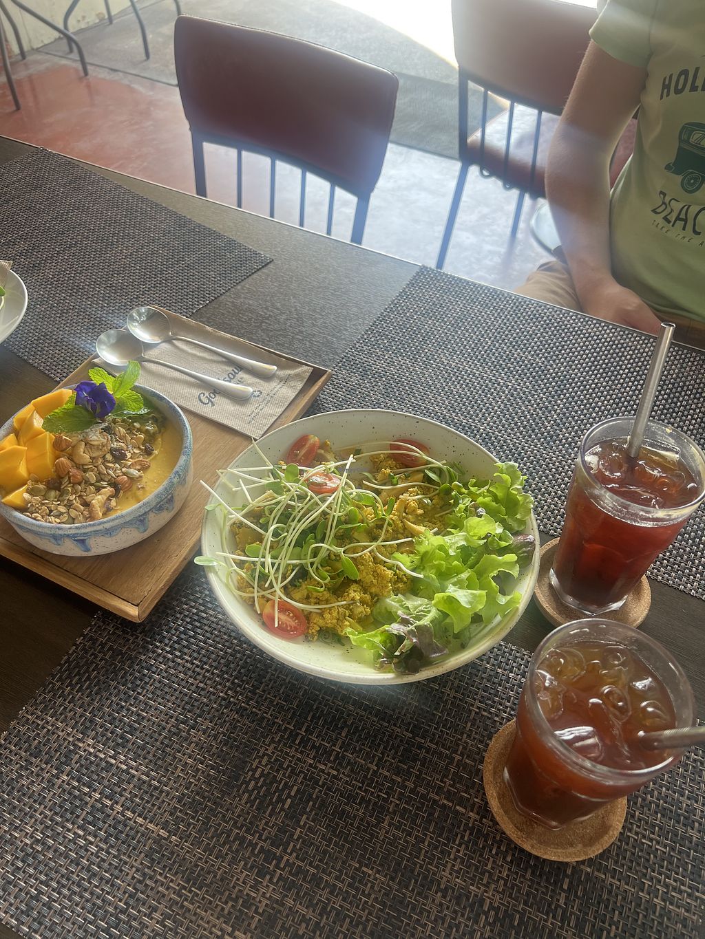 A little bit towards the priceier but very good options. Fully vegan place. We had the scrambled tofu and smoothie bowl! The ice coffee was very good! For Thailand expensive but definitely worth a visit.