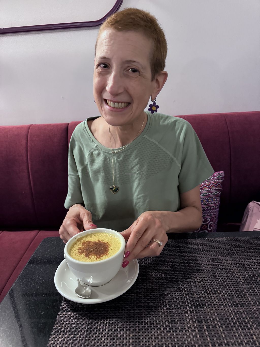Cons: Quinoa eggplant burger wasn't that special, Cheesecake could be firmer, Golden milk was too strong for me