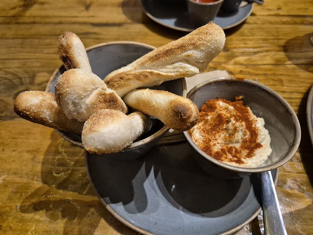 Dough bread sticks and houmous