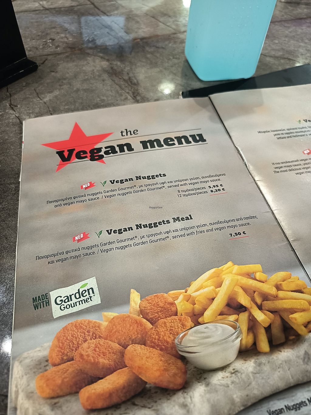 Lacto Ovo American Western Fast food Delivery Take-out Non-veg Serves meat, vegan options available. Greek chain burger eatery with a vegan patty option, salad, pasta, and vegan nuggets. Vegan mayonnaise available for fries. Open Mon-Sun 12:00pm-12:00am. More