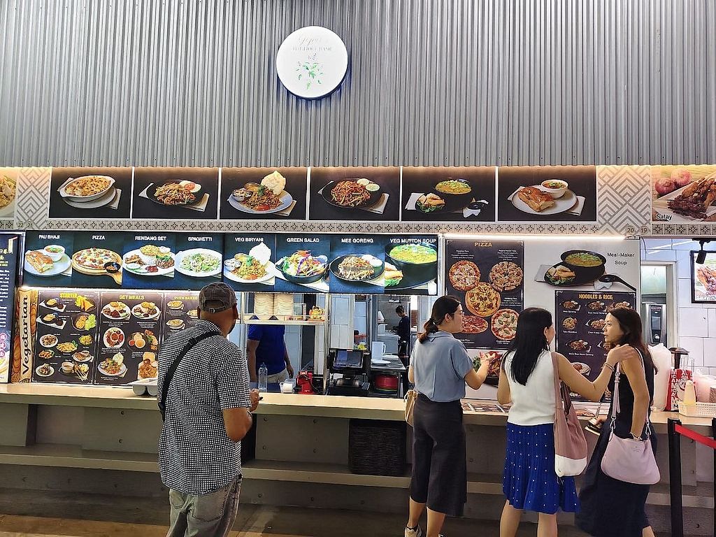A stall located within the Satay by the Bay food court, serving an extensive menu of Indian, Singaporean, and Western dishes. The food is entirely eggless and allium-free (no onion or garlic). The menu is largely vegan by default, with dairy-containing items clearly labeled. Signature plant-based options include the "Satay Set," "Nasi Lemak Set" (served with vegan egg and ikan bilis), and "Mala Bee Hoon Goreng". Western offerings feature stone-baked pizzas and pastas like "Spaghetti Aglio E Olio". Open Mon 5:00pm-10:00pm, Tue-Sun 11:30am-10:00pm.