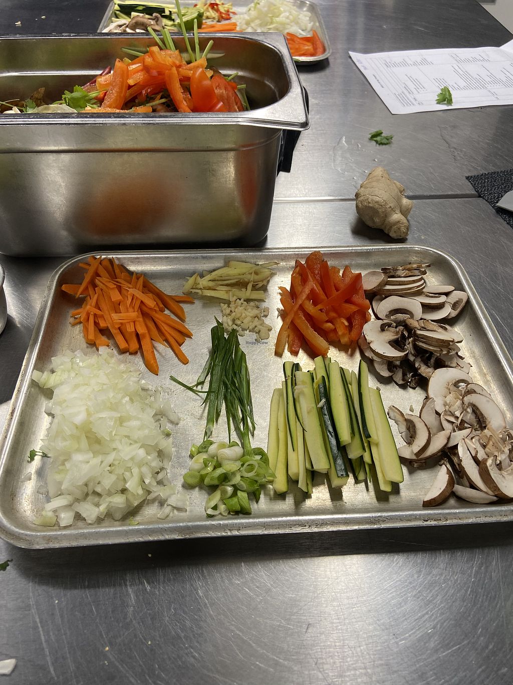 I just took the 90 minute vegetable chopping course. Was really cool to be taught professional knife skills and how to properly cut different vegetables! We made a sweet chili noodle stir fry. We even made the sweet chili sauce ourselves.