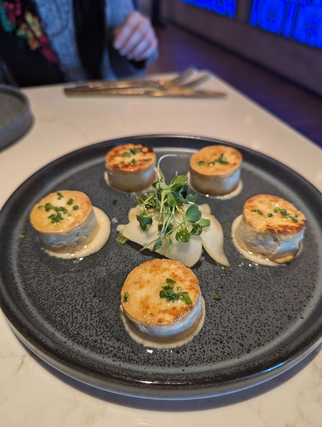 The seared tofu scallops are literally plain seared tofu with a small dollop of sauce. Vegan risotto is bland. Paying a premium to sit in a Gordon Ramsay restaurant and eat some vegan food that wouldn't have cut it 20 years ago, much less 2024. Saving grace is the dessert.