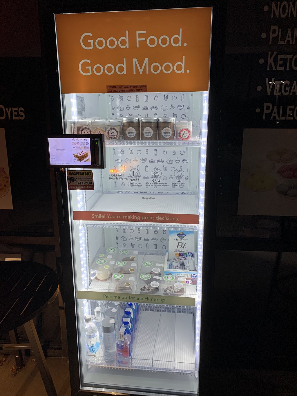 Pros: 24/7 access to refrigerated desserts and meals;, Wholesome, healthy ingredients;, Mostly reusable or recyclable packaging.