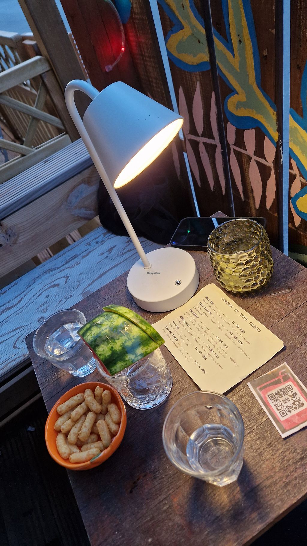 Super cozy and nice bar, staff was amazing, besides all-vegan drinks the service was spot-on and so generous, we got infused water, peanut flips and watermelon slices even before we ordered. Staff and owner were super kind, loved the anti-rightwing vibes and the calm and chill atmosphere, the clientel was great as well. This is not a place to get completely smashed, which I appreciate. Had a Piña Colada with vegan cream and coconut milk that was really nice. Will definitely come back to try more cocktails!