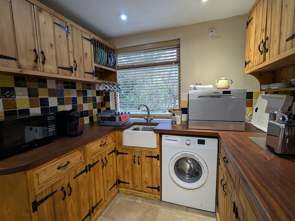 Kitchen with washing machine, small dishwasher, microwave, Nespresso m…