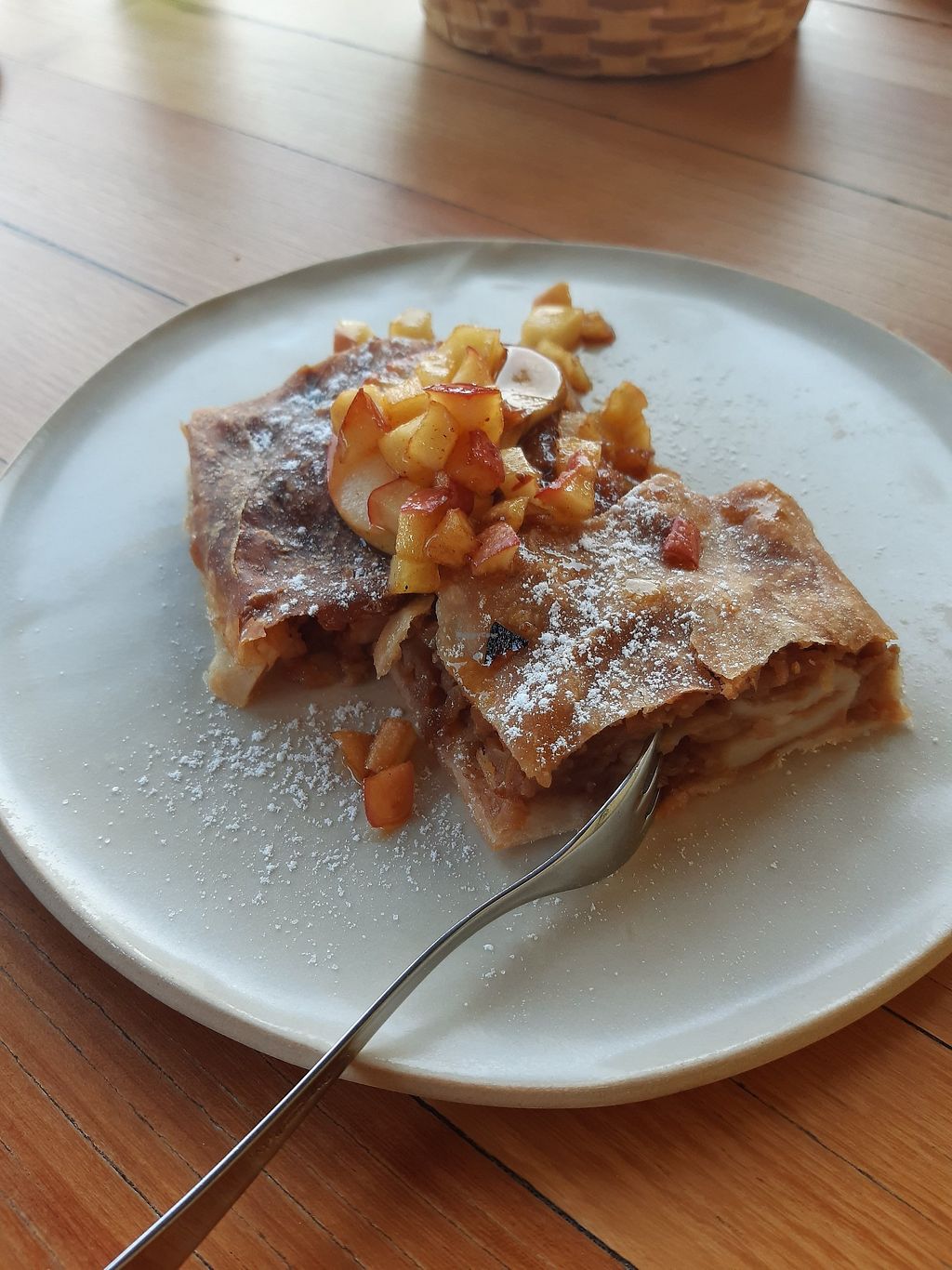 We paid 26e for two and we couldn't fit half an apple strudel in our bellies anymore.