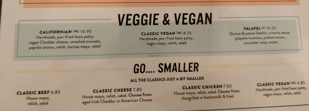 Menu burgers