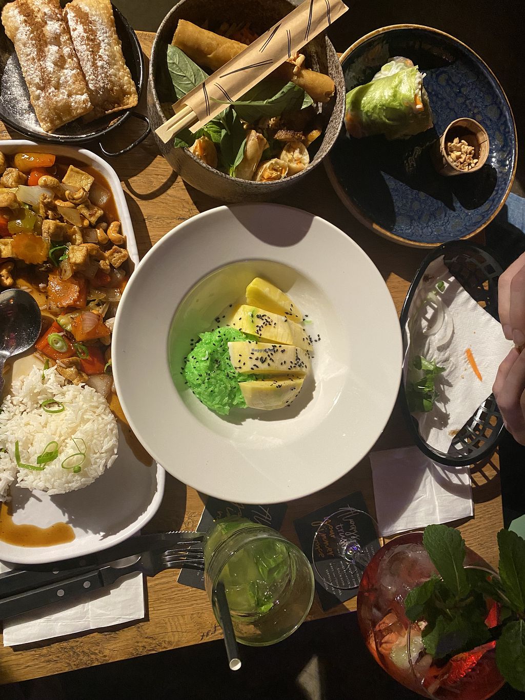 We tried the Pad Krapow Tofu and Phat Med Mamuang met Tofu from Happy Siam as well as some spring rolls from Em Oi. The rolls were okay, the rice dishes really good. We were pleasently surprised how tasty they were! Only downside is they taste almost the same so there's little variety.