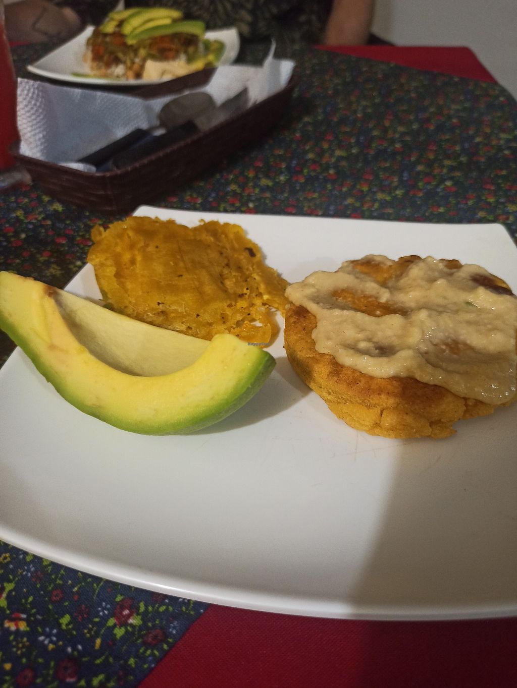 Corn pie, plantan and avocado