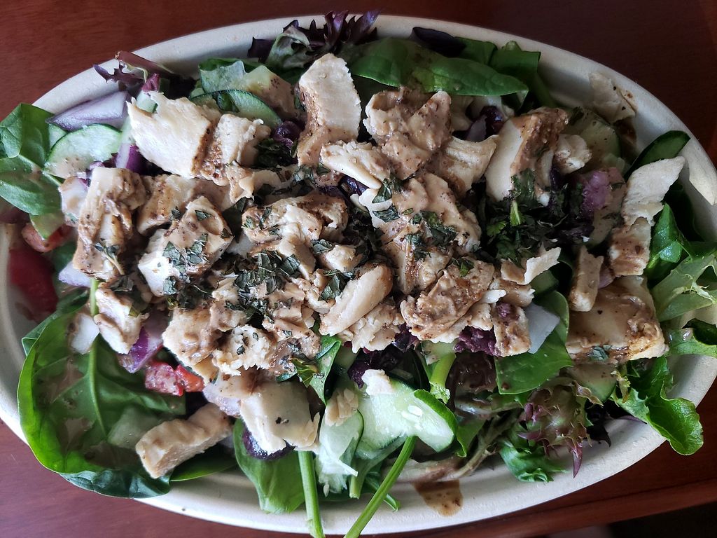 Mediterranean bowl w/Mindful Chik'n, no feta, & balsamic vs the pomegr…