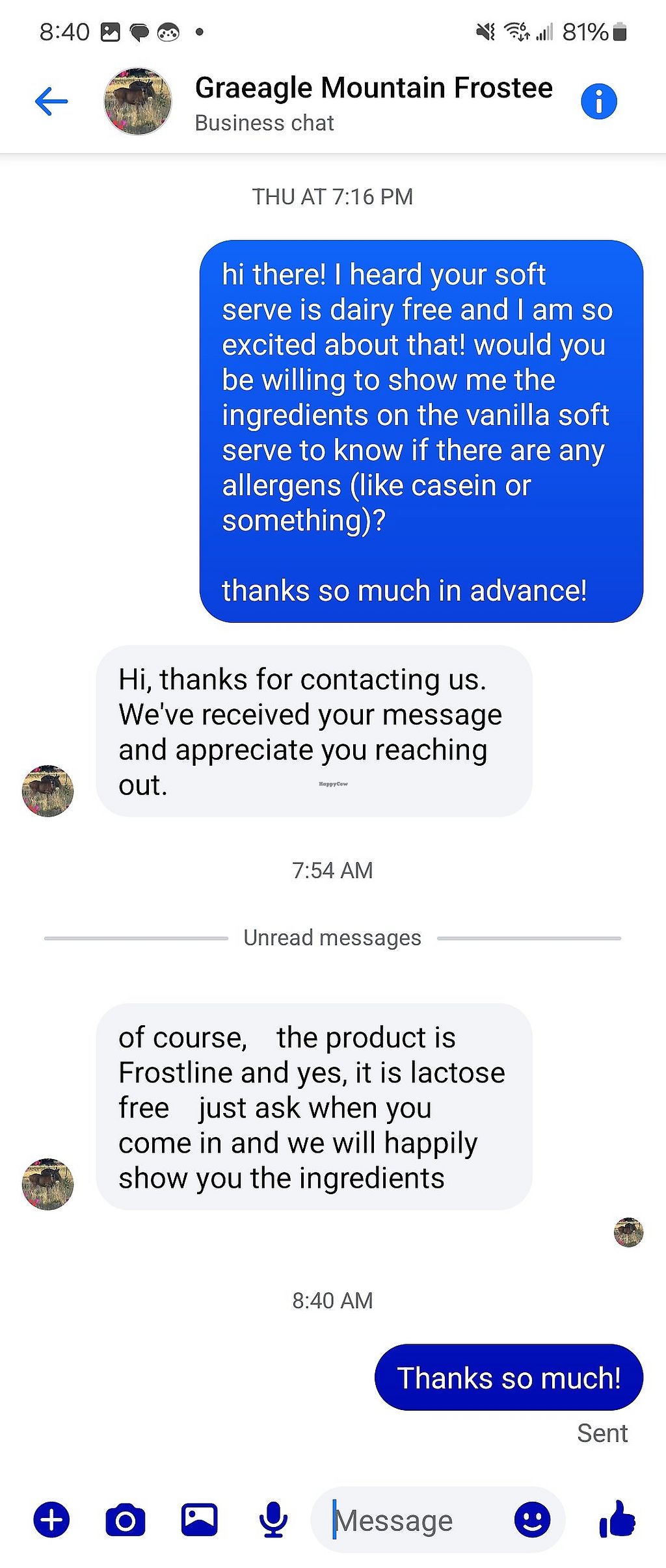 After seeing their very traditional looking menu, I went in and said "i heard you have some non-dairy options" and she said all their ice cream is non dairy. It did not sit right.... but after seeing the reviews here on happy cow, I decided to trust it.