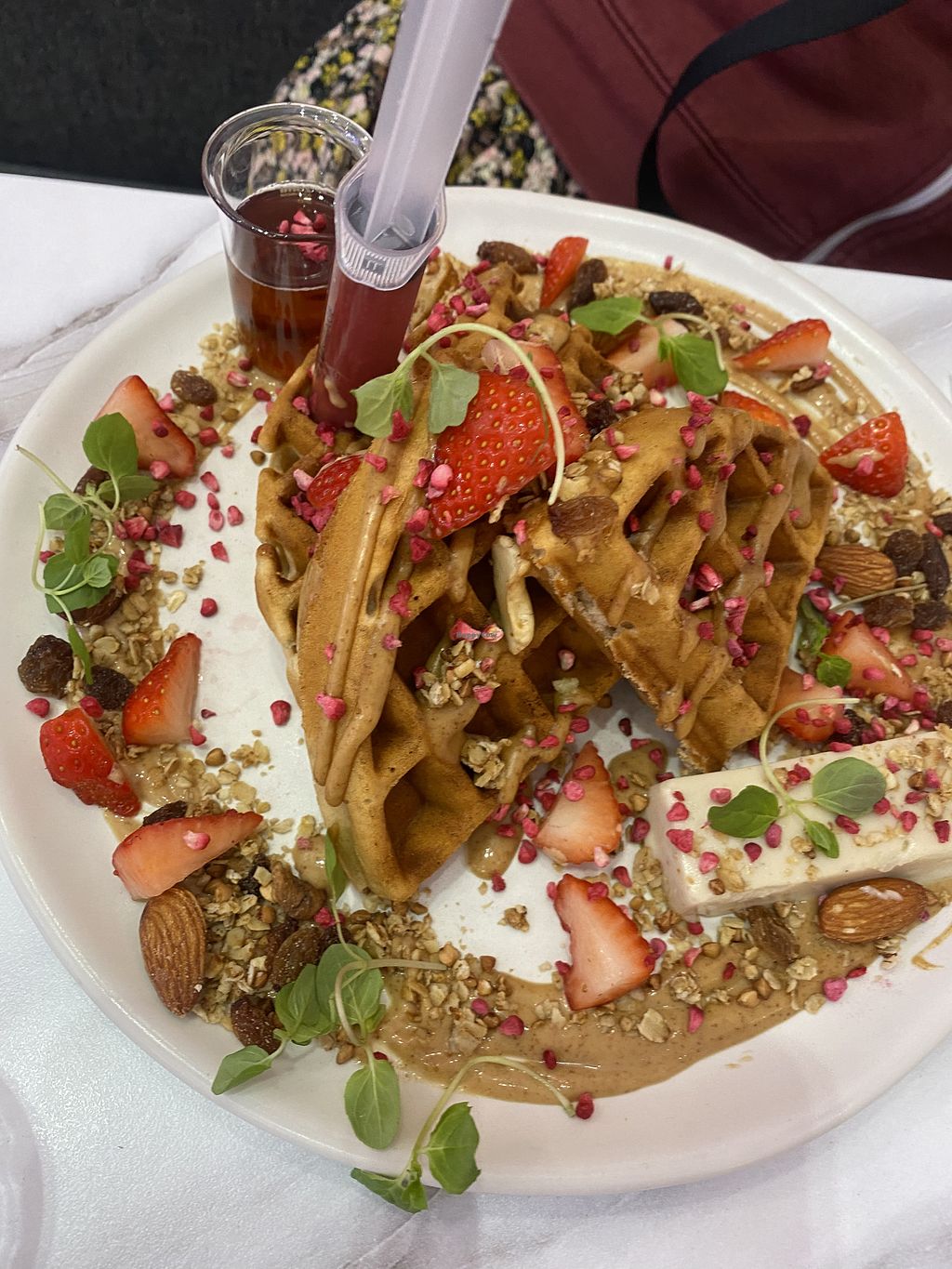 Finally managed to try the famous vegan waffles after seeing them all over my Insta feed. I had the plant based and jelly which came with granola, nuts, fresh strawberries and cashew cream. They keep refined sugars to a minimum here which is nice.