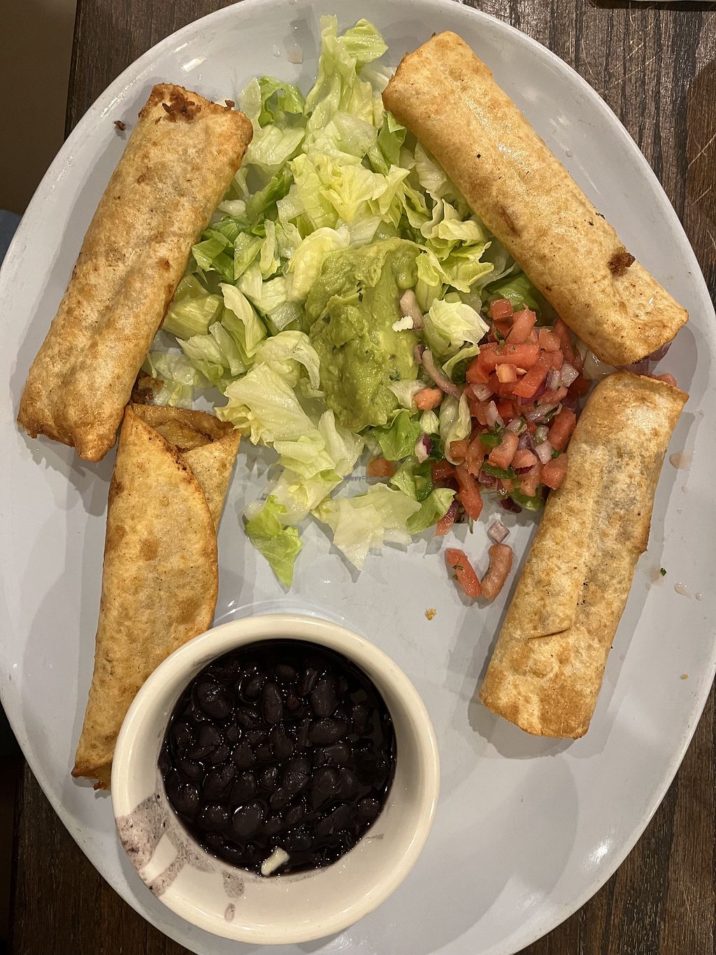 I've had the vegan taquitos twice now. Gave me so much food I had to take home leftovers (which I'm totally ok with!). Good service.