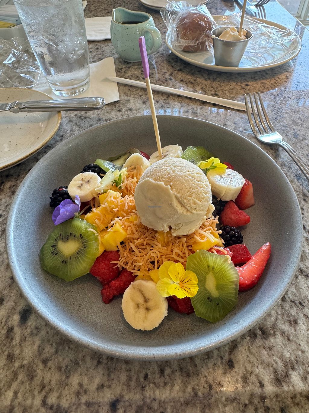 Fresh fruit bowl with coconut pineapple sorbet
