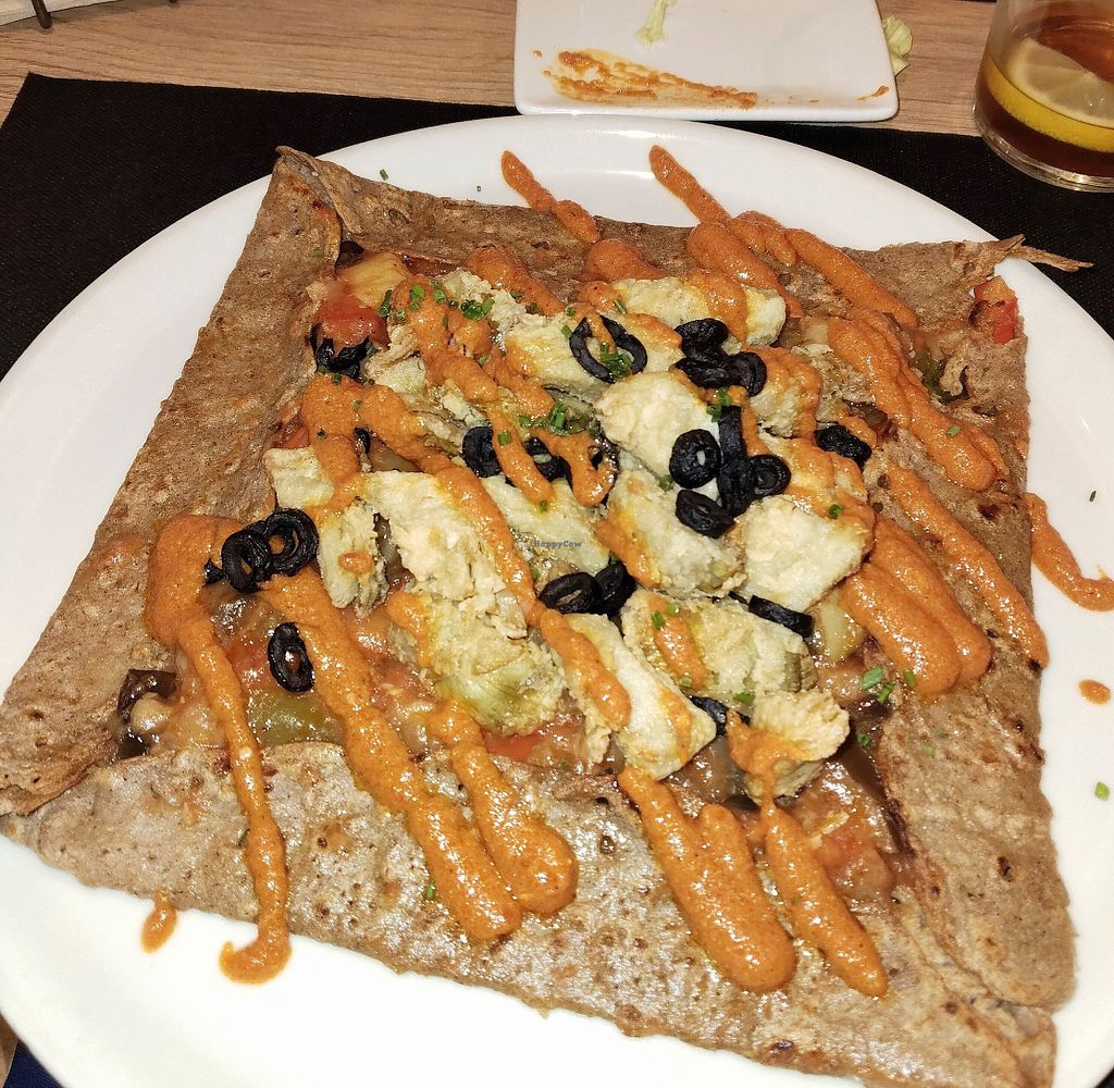 Serves meat, vegan options available. On the menu there are 2 vegan galette choices as well as vegan-friendly starters such as aubergine chips with agave syrup and falafel with hummus and smoked aubergine. Also has a vegan burger. Open Tue-Sat 07:30-23:00, Sun 10:00-23:00. Closed Mon.