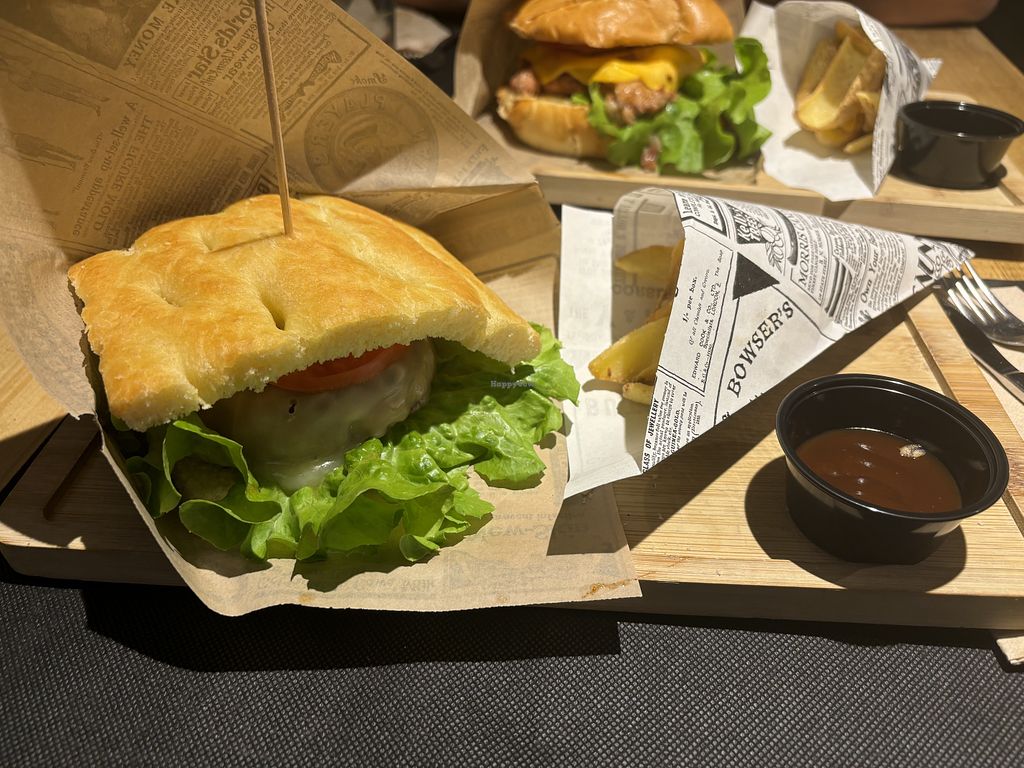 Puedes pedir cualquiera de sus hamburguesas con la beyond meat. Además tienen ensaladas y otras opciones veganas y vegetarianas.