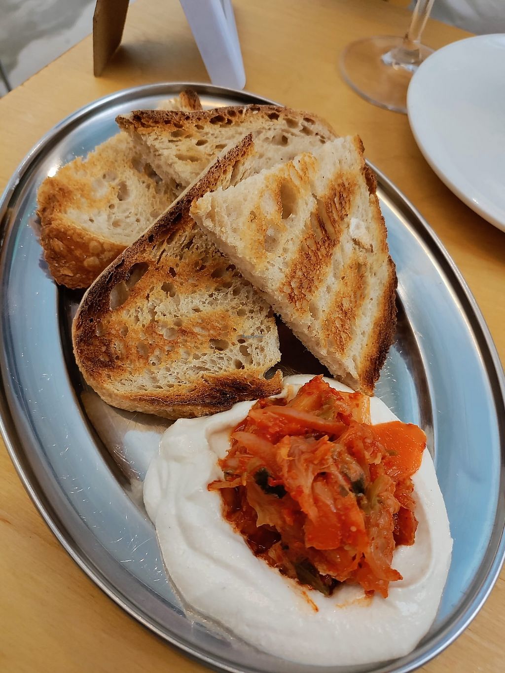 Bread with cashew cheese & kimchi