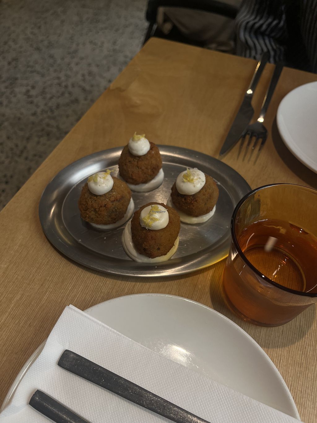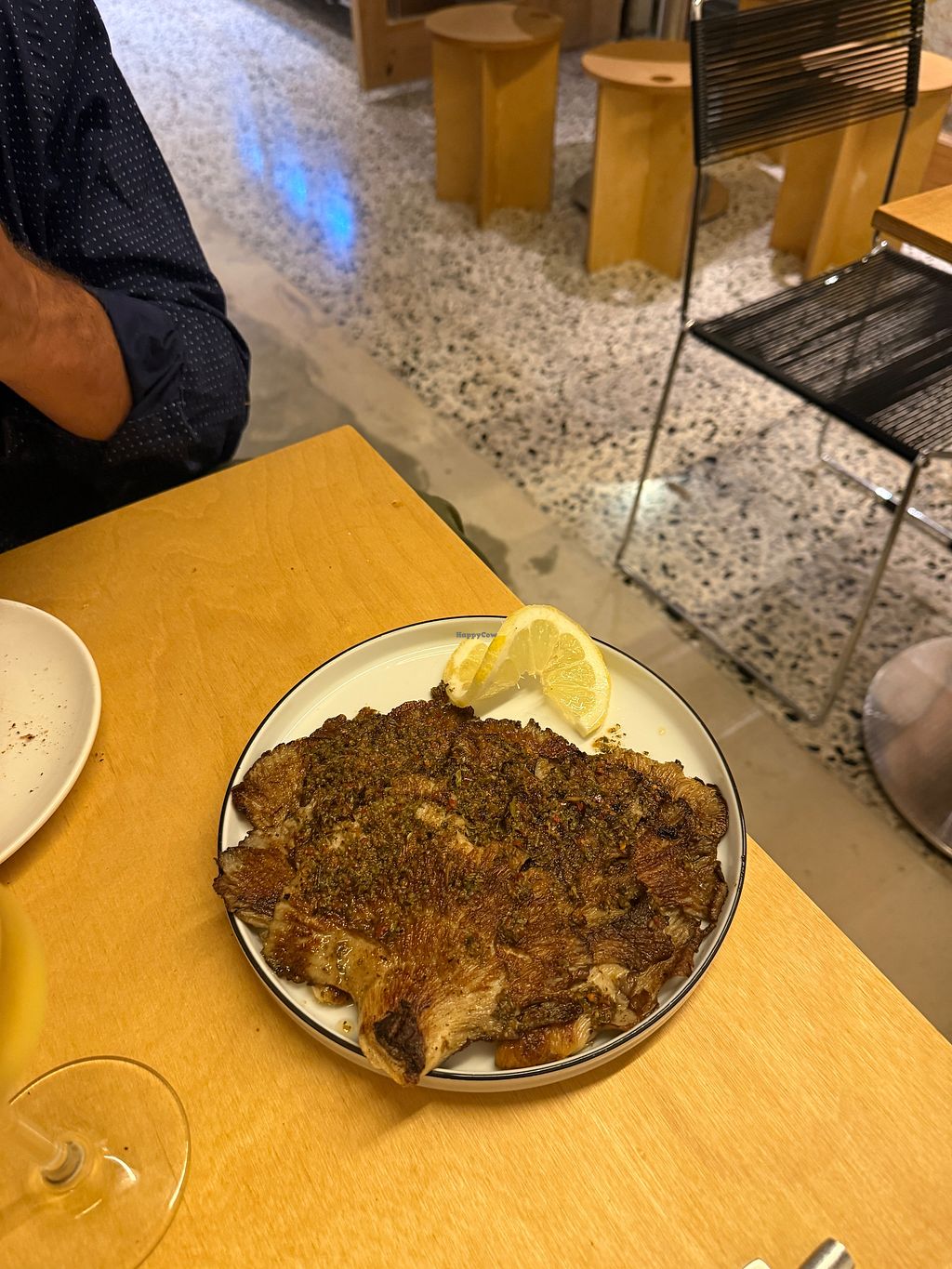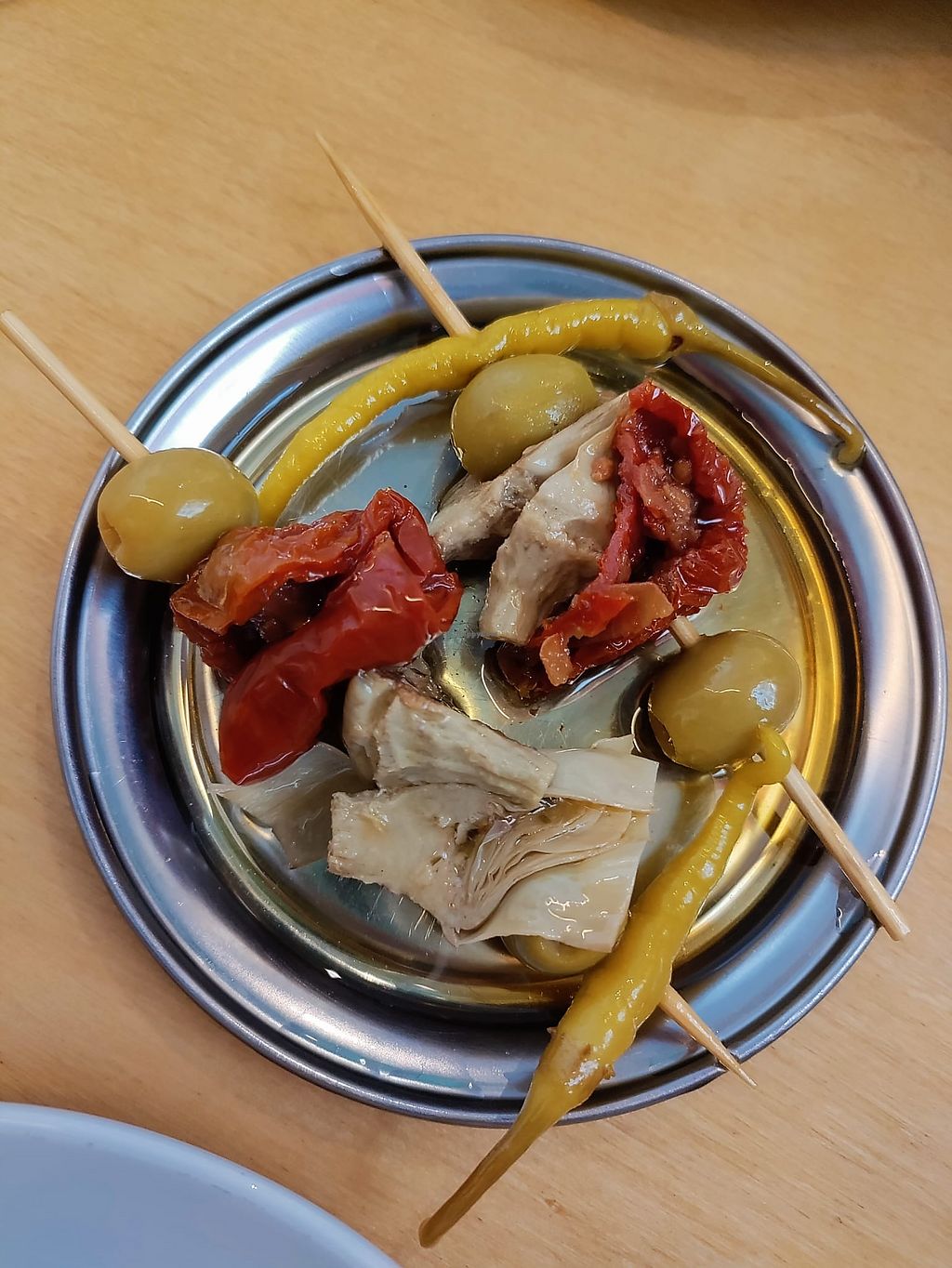 Truffle focaccia with cashew cheese, grilled artichokes and pickled on…