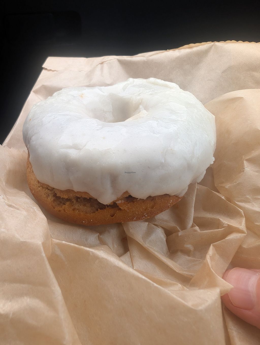 Multiple vegan options, I got a vegan egg roll with vegan bacon. It was tasty and the vegan egg was made in house and creatively/tastily done. I also had a vegan donut and decaf coffee was available fresh from a French press. They use fresh ingredients and the staff was friendly and down to earth.
