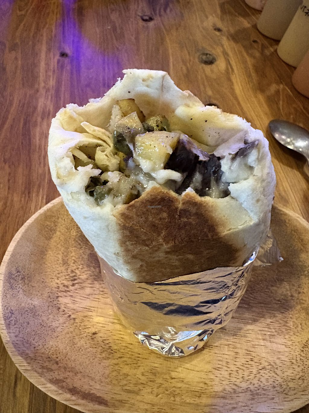 Serves meat, vegan options available. Mexican restaurant with vegan choices. Menu includes vegan burrito and chips with salsa or guacamole. Additional dishes can be made vegan upon request. Limited choices nearby. Open Tue-Sat 11:00am-10:00pm. Closed Sun-Mon.