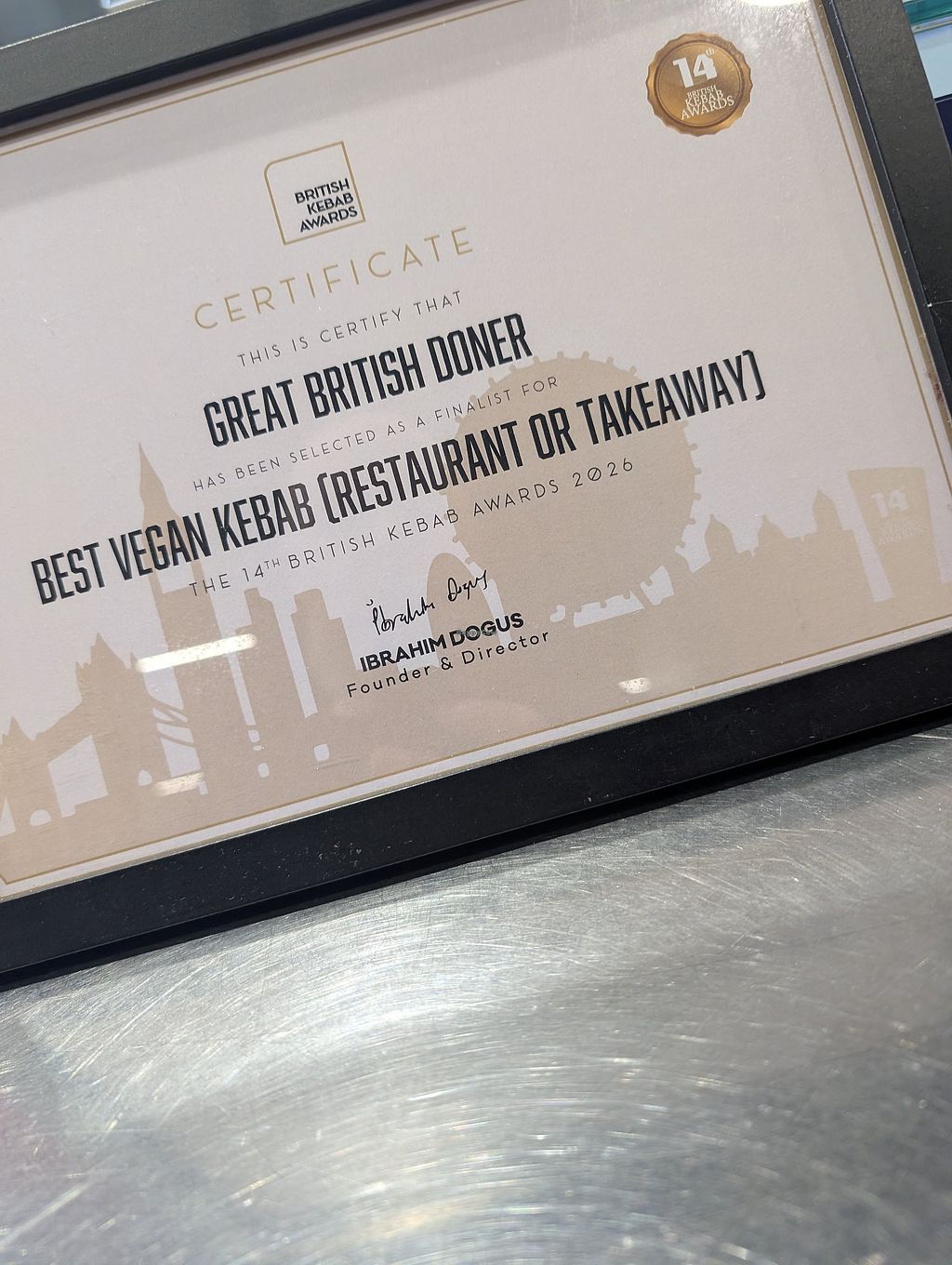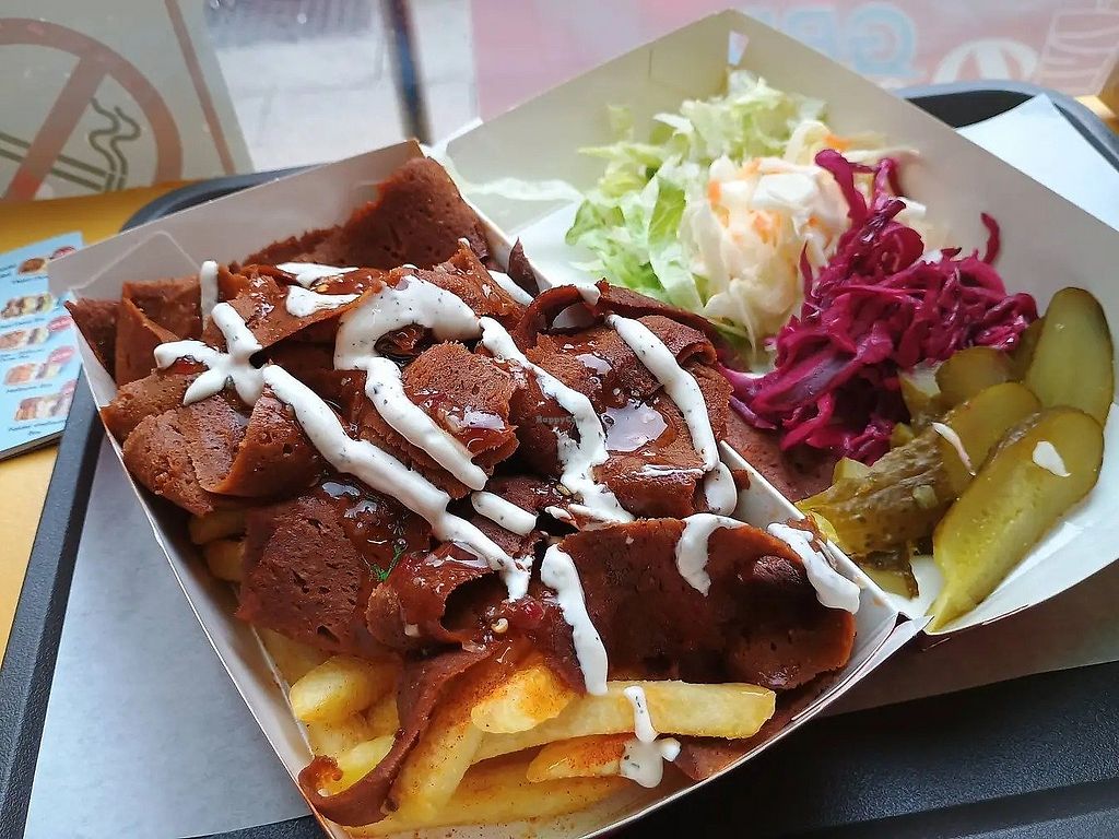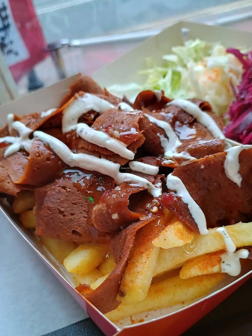 Vegan Donner tray with vegan mayo, chips and all sides of pickles and …