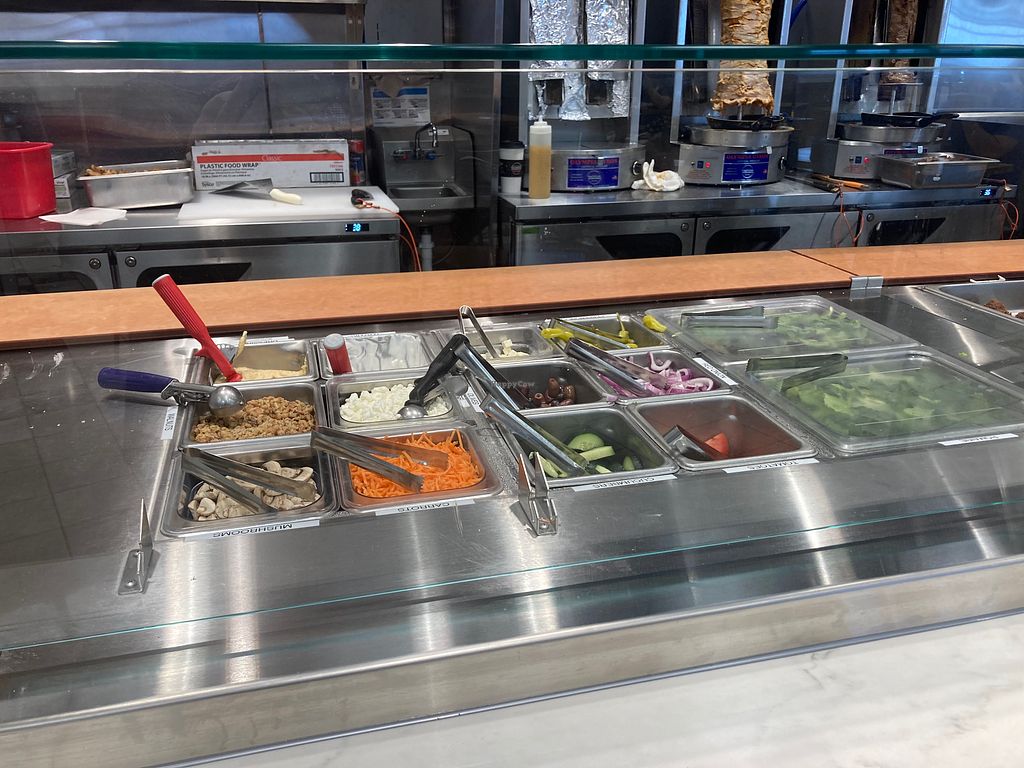 They have tasty falafel and lots of vegan toppings and sauces. I had hummus, onion, tomatoes, Kalamata olives, cucumbers, and hot tahini sauce. It was eleven bucks and change. The staff is super nice.