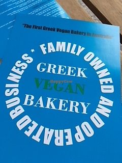 I went to Greek Vegan Bakery yesterday, and was compelled to let the world know how special these people and their delicious food are. Fior is passionate and generous of heart, and her food reflects this passion and generosity. Highlights are their vegan versions of mousaka (with its baked eggplant and potato providing less oil than the fried alternative), yemista (stuffed capsicum and tomato), spanakopita and bougatsa, as well as some great little choc chip cookies and orange biscuits. Vegan or otherwise, check out this place to remind yourself of the good in this world.