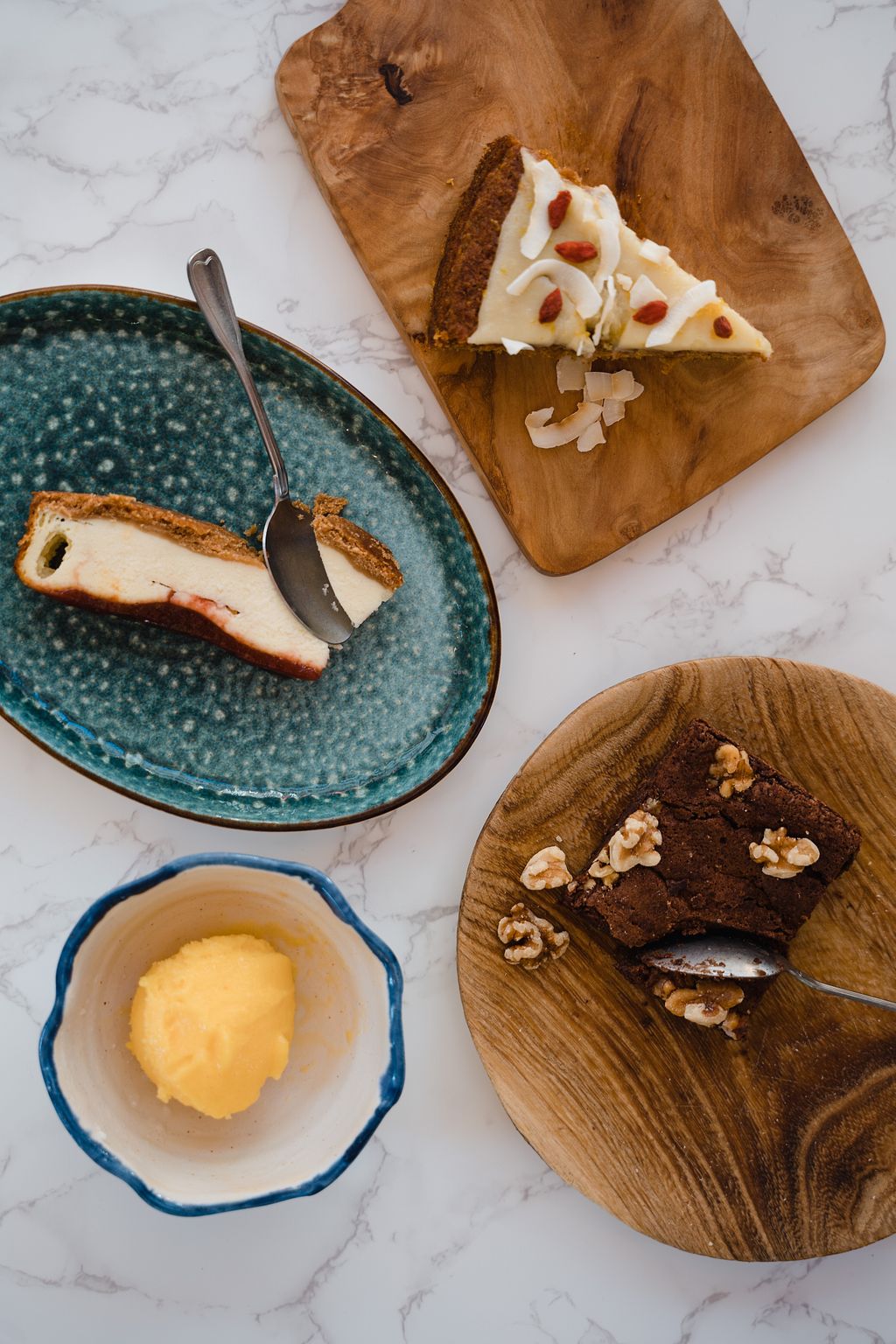 El bol de heura está muy bueno, al igual que las hamburguesas, que a veces llevan queso pero puedes pedir que te pongan queso vegano. La tarta de zanahoria con helado también genial.