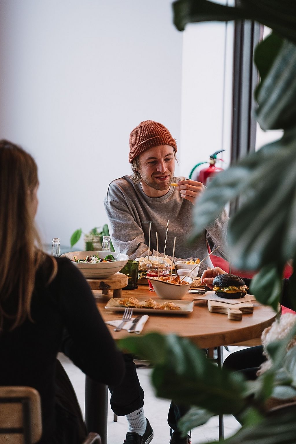 Bonic restaurant, ben decorat i espaios. El camarer ens va tractar de meravella tot i arribar a les 22 quan tanquen a les 22:30. El menjar està delicios, vam provar les croquetes de tofu, l'hamburguesa de llenties amb tomaquet confitat i el sandwich d'heura, i de postre el lemon pie i carrot cake. El lemon pie estava increïble. La cervesa de barril és artesanal i boníssima.