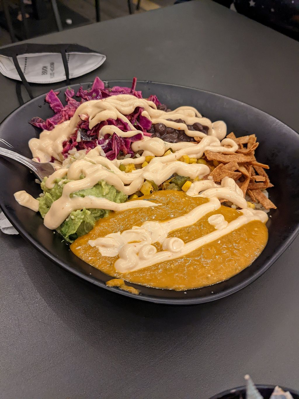 Nice restaurant with indoor and outdoor seating. Staff is very friendly and assisted with choosing a dish. I ordered the sweet potato glass noodle bowl. I thought it was tasty but could have been a little better. The bowls are pretty filling so that’s good.