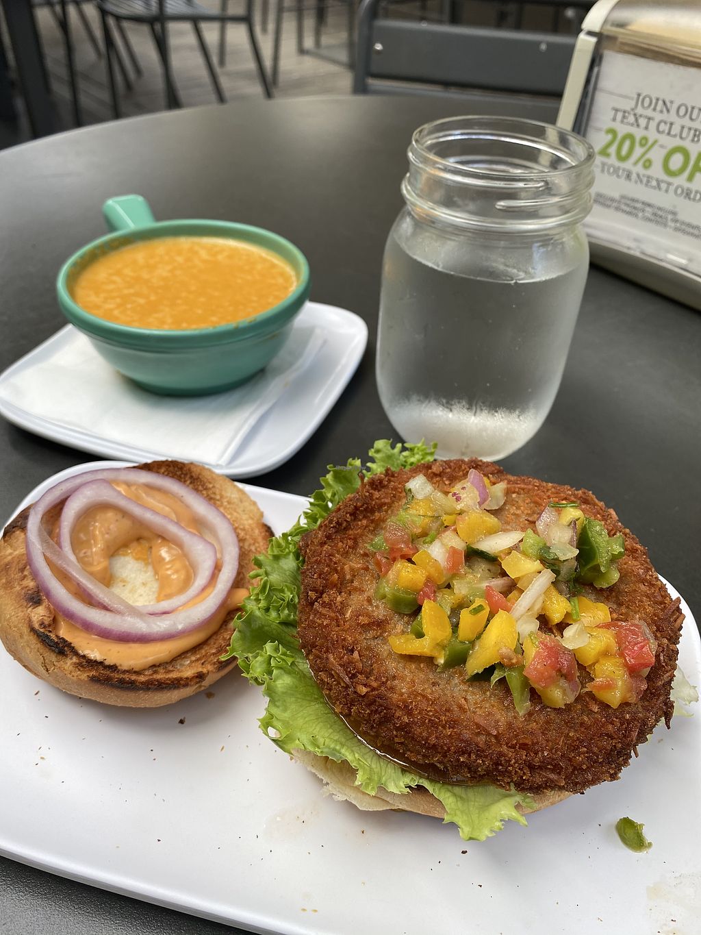 This is my favorite restaurant. I always get the coconut burger 🍔. It’s so delicious 😋 Nice chill restaurant/ atmosphere. I kept going back. The Thai soup is good as well.