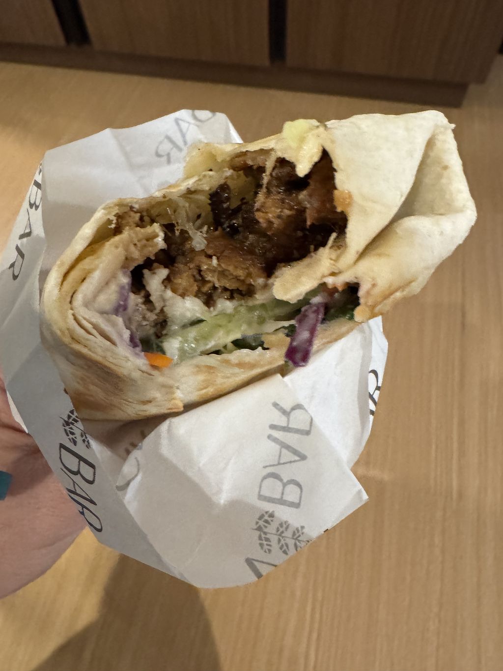 The vegan breakfast sausage sandwich and cauliflower wings were delicious. The kebab wrap was all good. The ambiance was nice, and the staff was friendly.