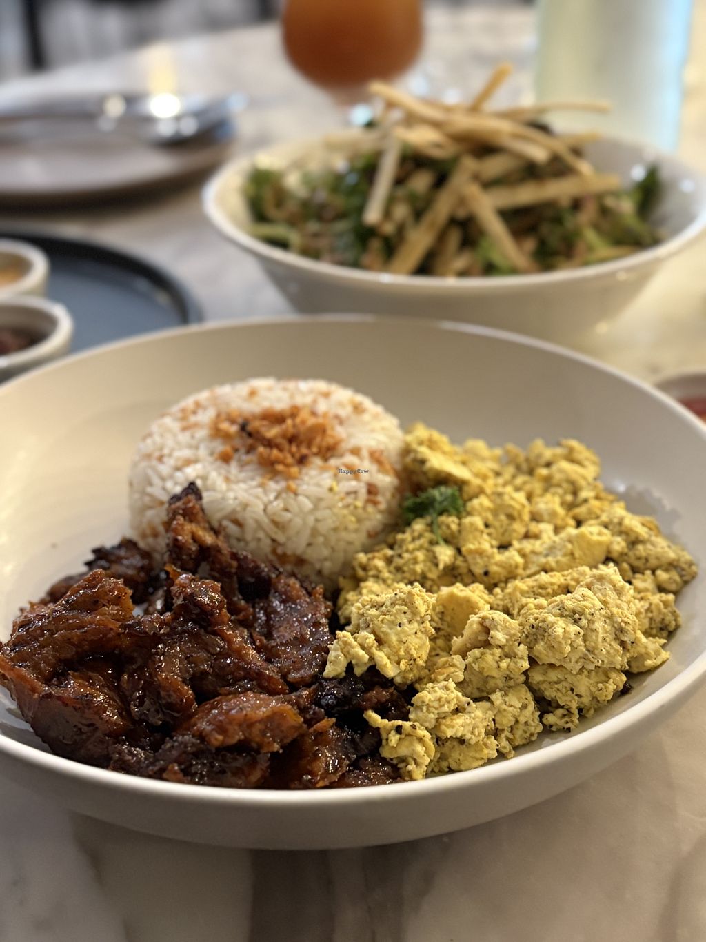 Filipino breakfast. Vegan Tapa