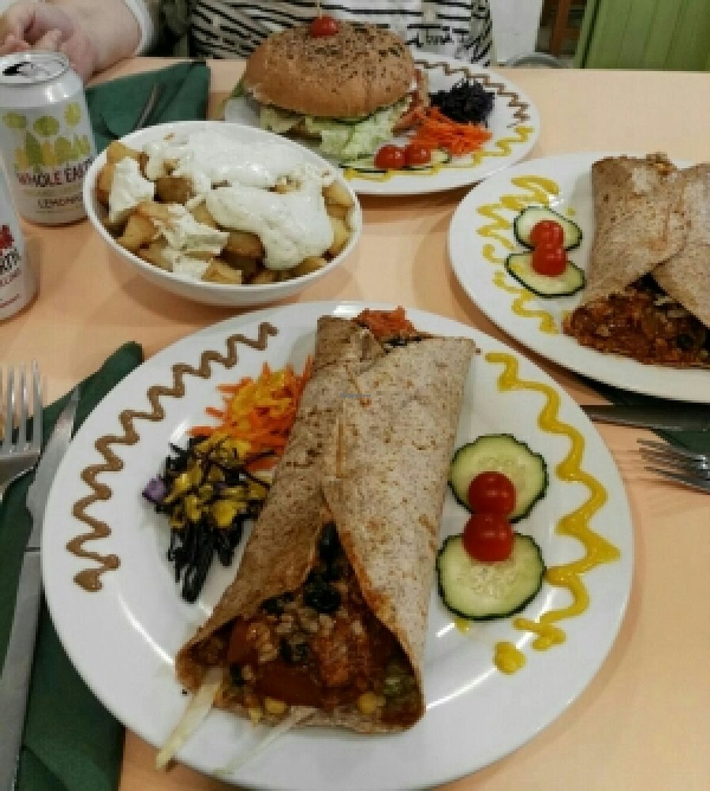 Burritos, crudiespaguetis, hummus y cerveza ecológica