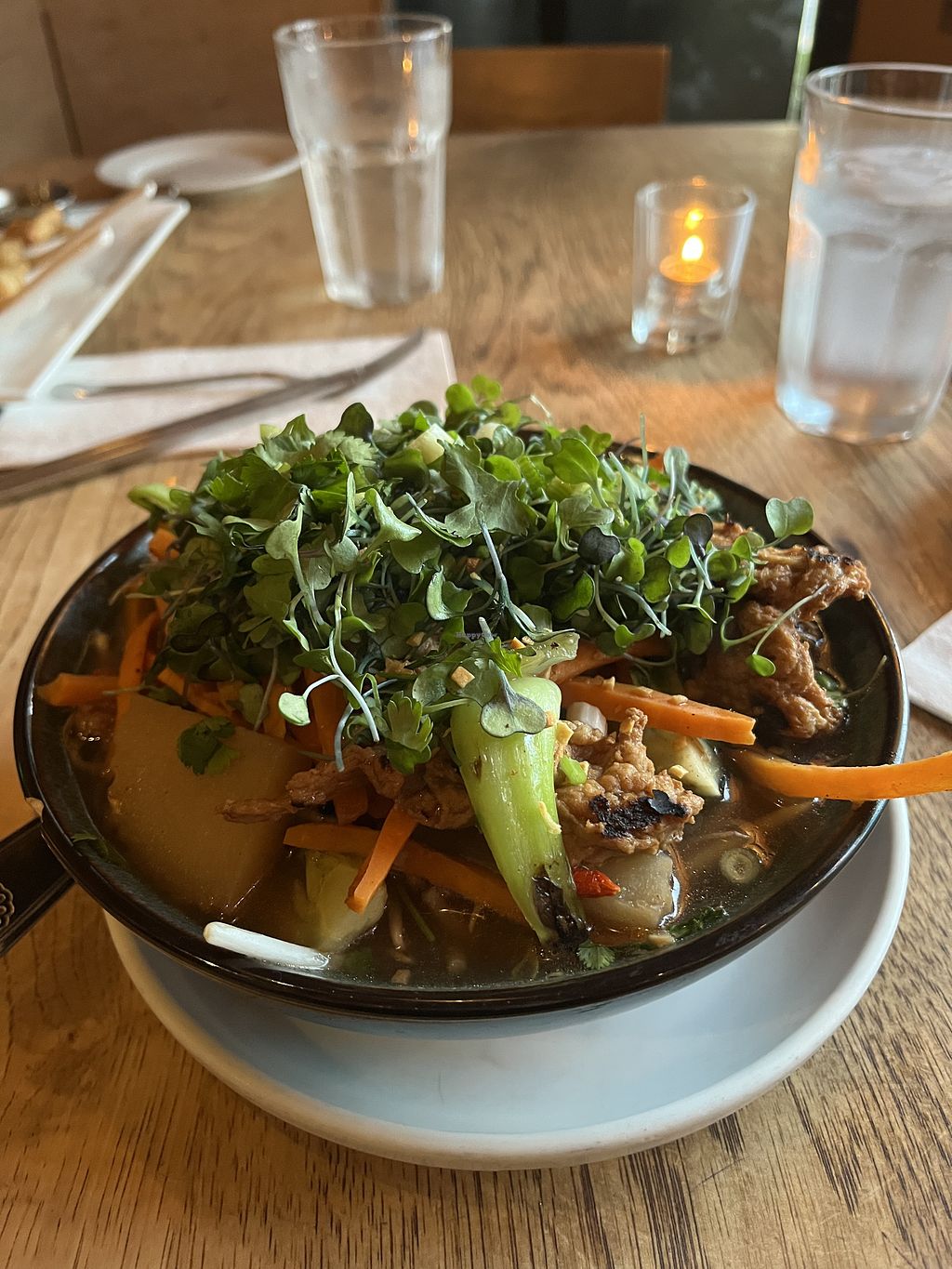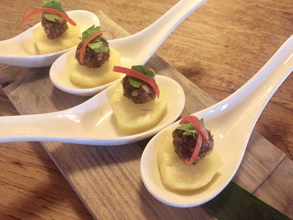 This place was actual fire. We had the chive dumplings, soy nuggets, brussel sprouts and I had the tofu tikka masala and every slapped. Can’t wait to go back!