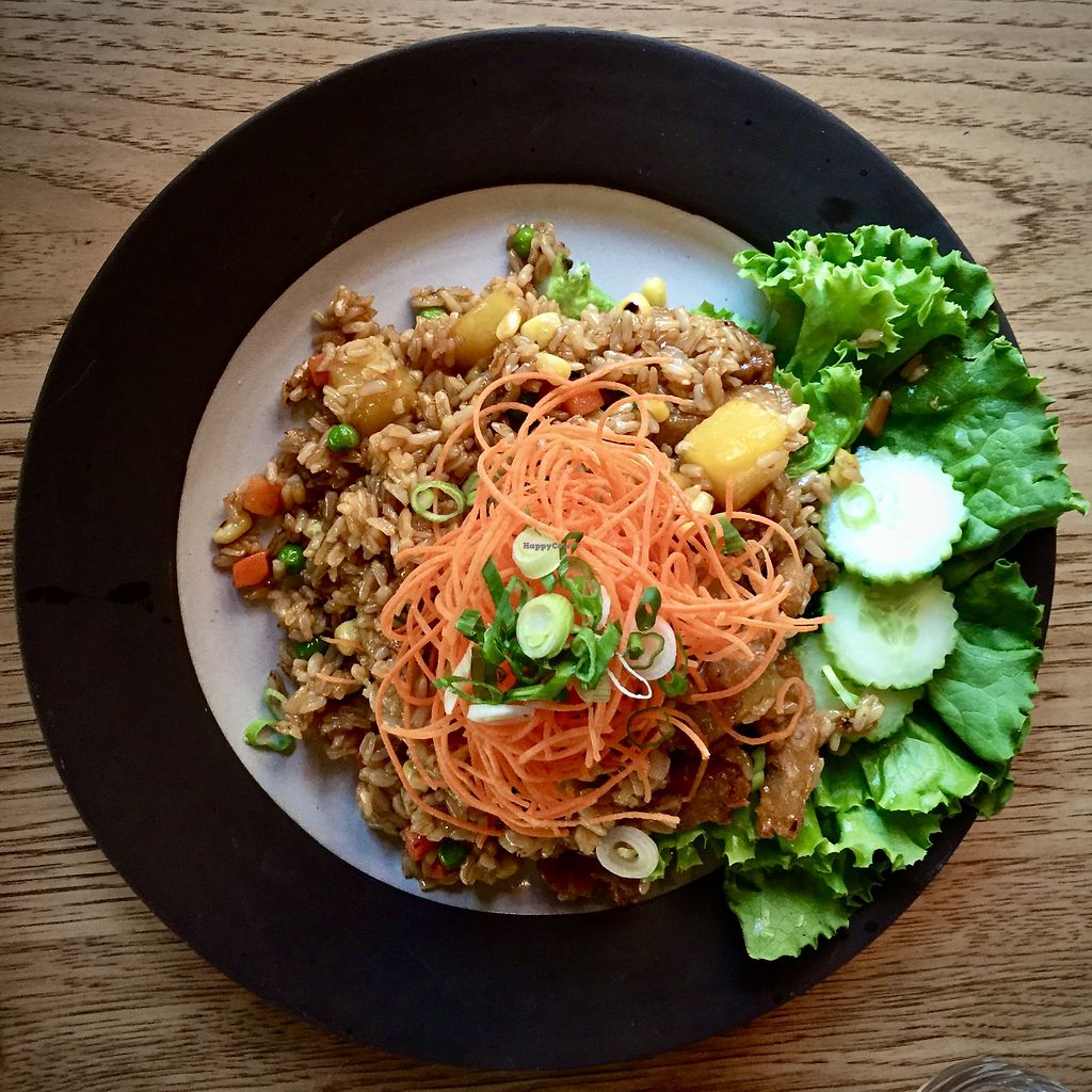 I’m vegan and always want to like a vegan/vegetarian restaurant, but my meal was really not great. The samosa appetizers were very very tiny and not especially well spiced. The king oyster mushrooms appetizer seemed skimpy too and not as good as we’d hoped. I had the stir fry with tofu and although I love tofu, this may have been the worst I’ve ever tasted - dry, tough, and tasteless. There wasn’t much tofu either, just lots of overly crisp vegetables in a watery brown sauce and a clump of rice. Could have used some spicing. My brother's fried pineapple rice was better, but seemed pretty greasy. Not sure I’ll go back there again.