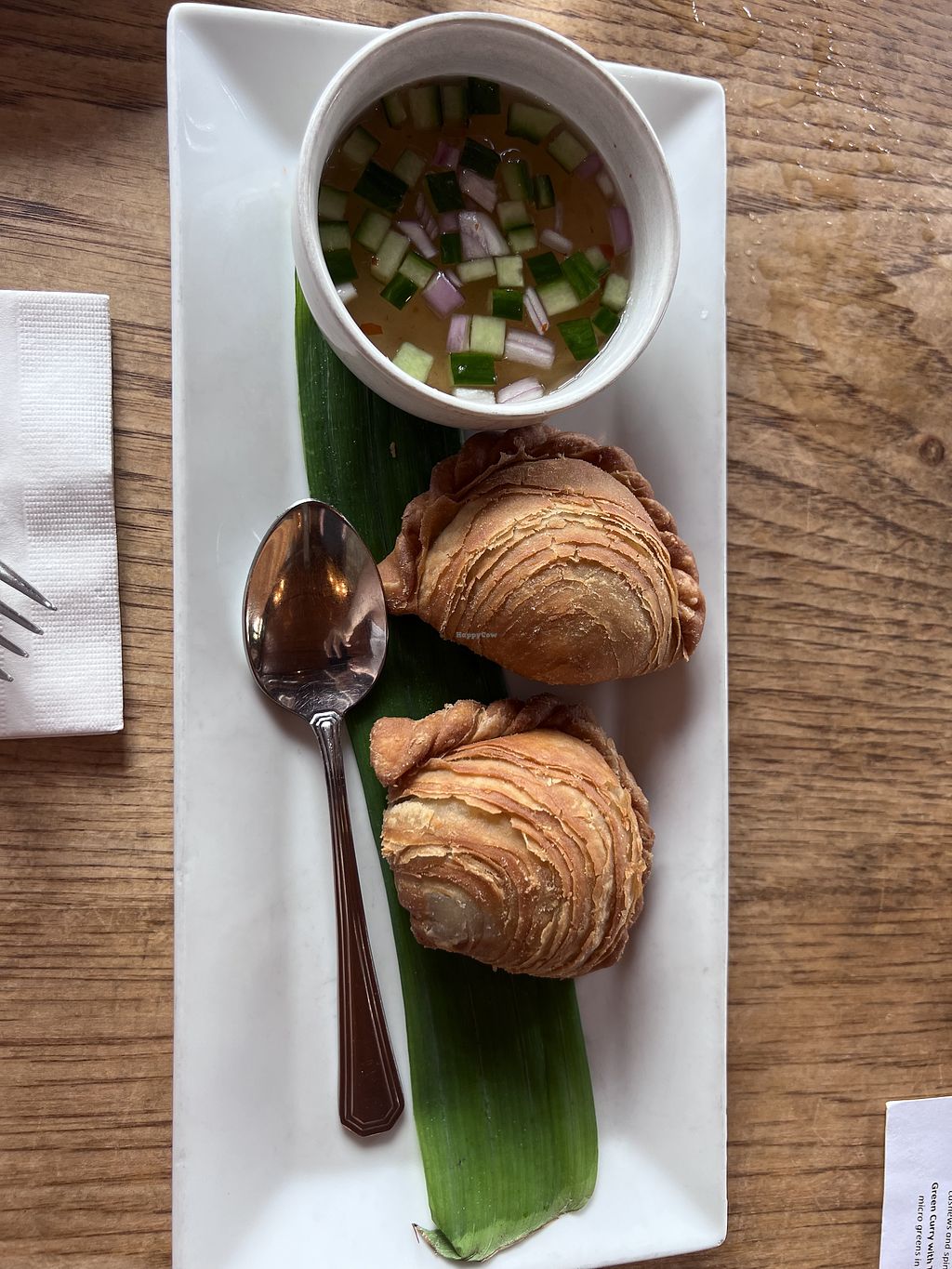 We had the samosas, panang curry and spicy veg. medley, all were very flavorful w/ fresh ingredients. Quick, attentive service. Desserts & bar looked tempting but too early in the day for moi. Pretty decor & view from window seats, would be a nice date spot.