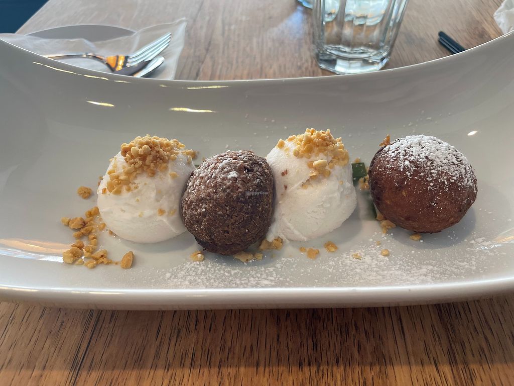 The food was delicious, the place was very busy, yet staff was very friendly and helpful, vegan options are clearly marked. We enjoyed the Fragrant Coconut, Banana Curry and stir fried Asian vegetables, Sorbet Trio was great too.