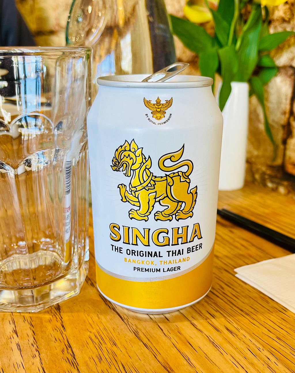 The Green Elephant is located in what appears to be a prime downtown location (mere steps from the Portland Modern Museum of Art; across from the State Theater). The restaurant is a narrow rectangle of a place, judiciously laid-out with a couple of booths on one side, 2-seaters on the opposite, and 4-seaters center and at the windows. We were there at opening (11:30 am), and (after the long drive from Bucksport) were famished!! Inside, the place is modern, clean and light. The host was prompt and inviting; we picked out a table at the window. Our waitperson, Kayla, arrived lickety-split thereafter, and was rarin' to get us goin' since we were time-limited and feeling light-headed from not having our mid-morning meals!😉Famished and parched, a Singha is a no-brainer starter pour moi! (I was surprised to see it arrive in a can -- in all my years, I've only ever had it in a bottle. Lol!) We started with a shared order of the vegan King Oyster Mushroom Tempura (served with a soy dipping sauce). As an introduction to this restaurant's menu: OMG, this sets the bar and expectation level at a dizzying height! (I'm getting ahead of myself, but we came here with our visiting family several days later and ordered it again: O-M-G STILL amazing! Next time around, I'm ordering this one just for me: No sharing!)😉For meals: I had the Local Mushroom Rice Bowl (which was very delish and used locally produced Tootie's Tempeh for a protein). My better-half had the Siamese Dream Curry Noodles, which he said was excellent.