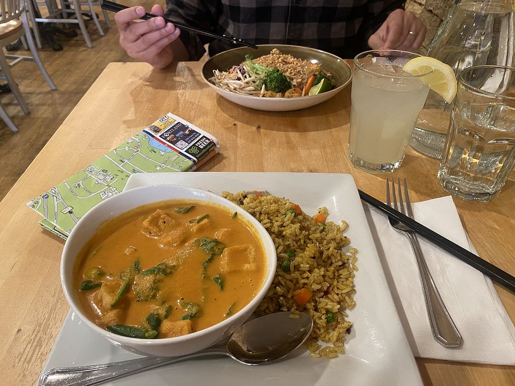 This was my first time at the Portland location. Food was as always, amazing. we started with spicy fake chicken apps, and I got the pad Thai. My friend got the Siamese Dream curry noodle. Then we got the chocolate mousse cake with orange. Can’t say enough good things about this place. I would’ve given it five stars had it been all vegan.