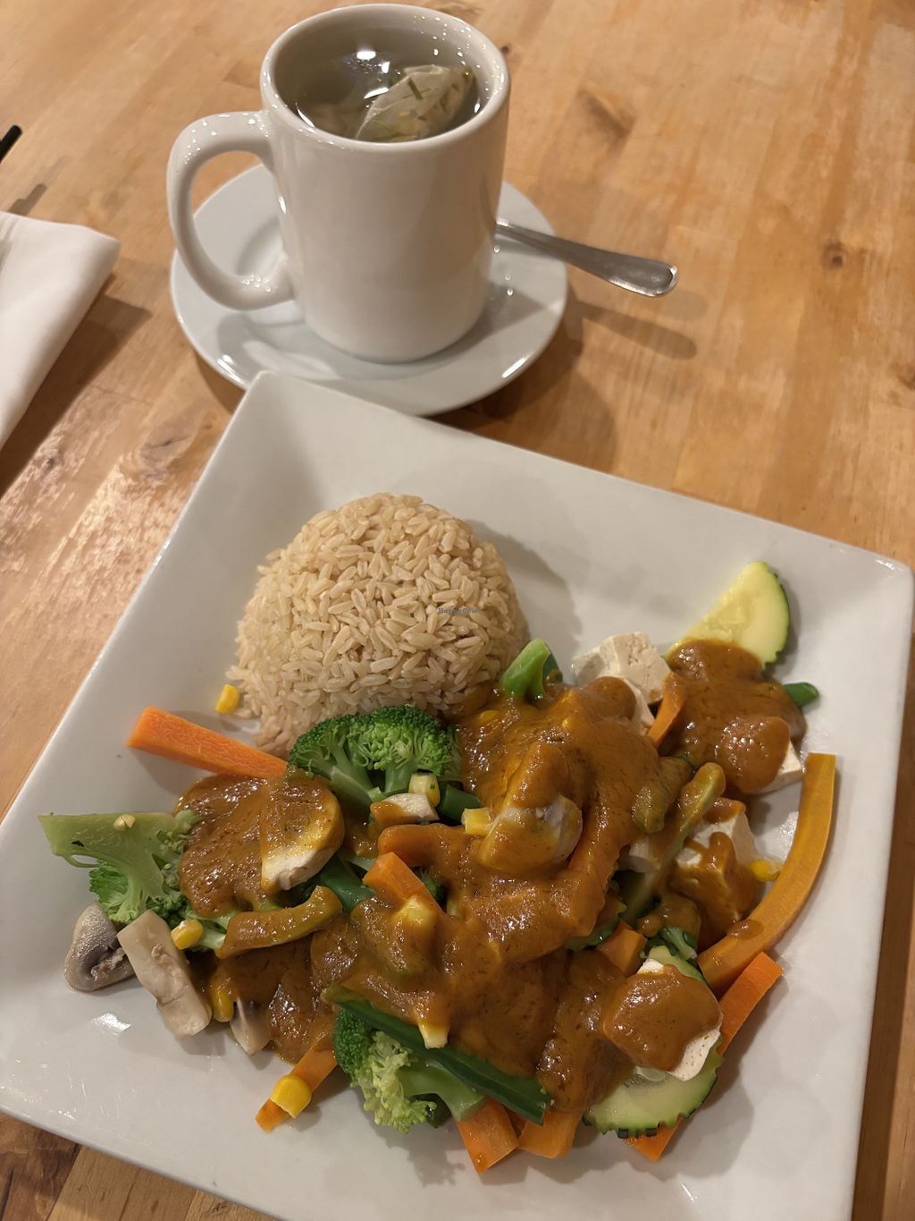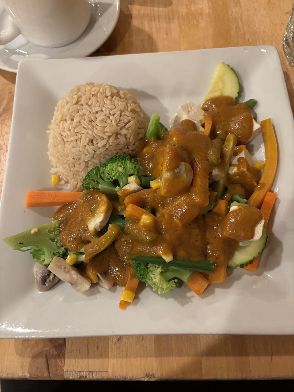 I loved this little place. Atmosphere and attentive, friendly staff made it a perfect meal. I got the veggies with tofu in peanut sauce. It was just what my body was craving and did not disappoint.