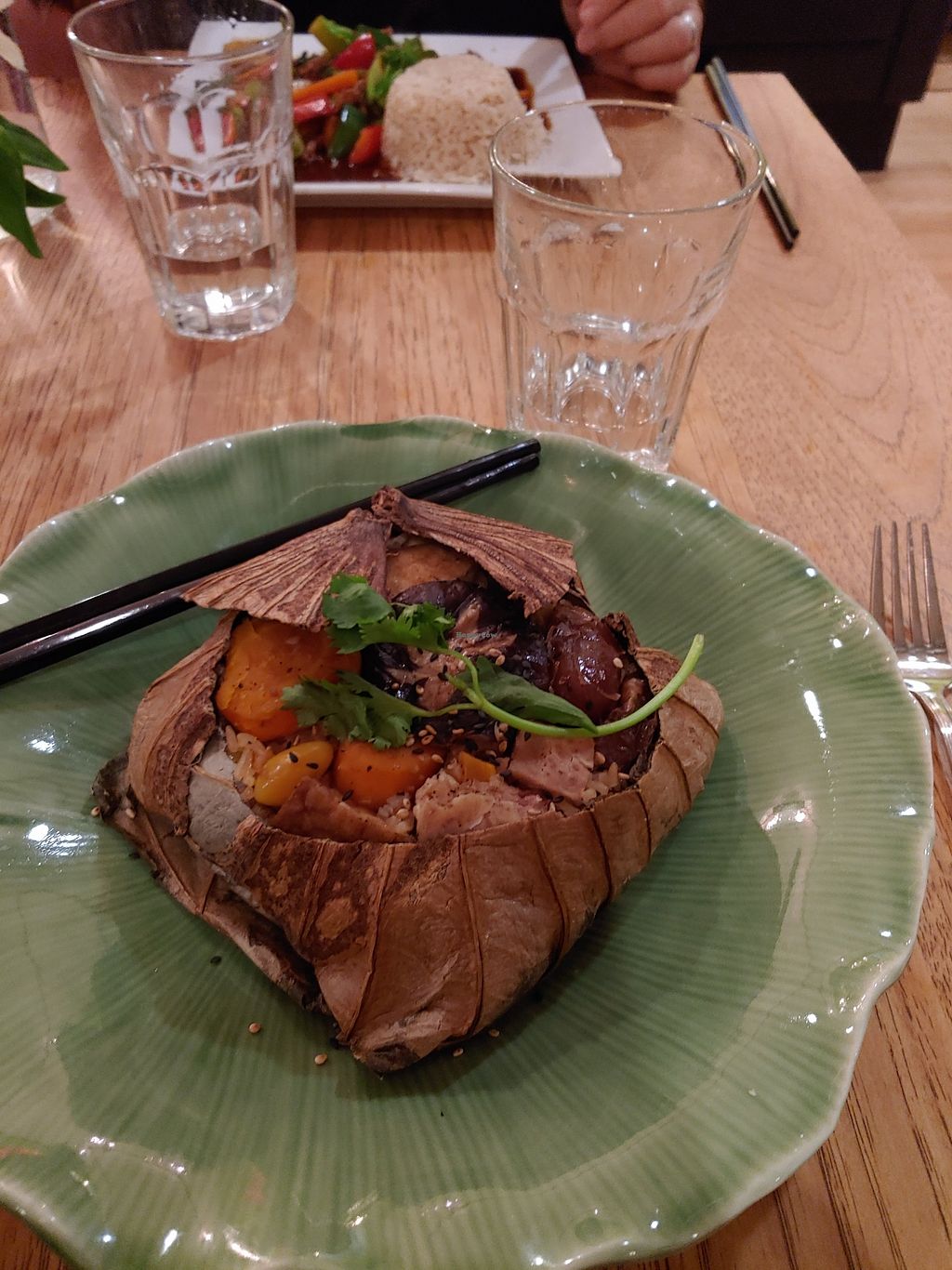 Lotus leaves wrapping Jasmine rice, unique veggies. Steamed, no oil. D…